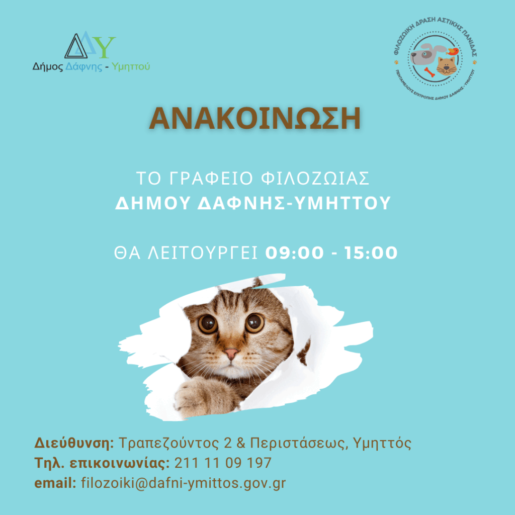 ΤΕΛΕΥΤΑΙΑ ΝΕΑ ΠΕΝΤΑΜΕΛΗΣ ΕΠΙΤΡΟΠΗ ΠΑΡΑΚΟΛΟΥΘΗΣΗΣ ΤΟΥ ΕΠΙΧΕΙΡΗΣΙΑΚΟΥ ΠΡΟΓΡΑΜΜΑΤΟΣ ΔΙΑΧΕΙΡΙΣΗΣ ΑΔΕΣΠΟΤΩΝ ΖΩΩΝ ΣΥΝΤΡΟΦΙΑΣ & ΠΡΟΛΗΨΗΣ ΔΗΜΙΟΥΡΓΙΑΣ ΝΕΩΝ ΝΕΟ! Ανακοίνωση | Ωράριο Λειτουργίας Γραφείου ΦιλοζωίαςΔημότες,Πολίτες,ωράριο λειτουργίας,Πενταμελής Επιτροπή Παρακολούθησης του Επιχειρησιακού Προγράμματος Διαχείρισης Αδέσποτων Ζώων Συντροφιάς και Πρόληψης Δημιουργίας Νέων,Ενημέρωση,Ανακοίνωση,Δήμος Δάφνης - Υμηττού,Φιλοζωική ΕπιτροπήΔημοσίευση: 28 Νοεμβρίου 2025, 11:48