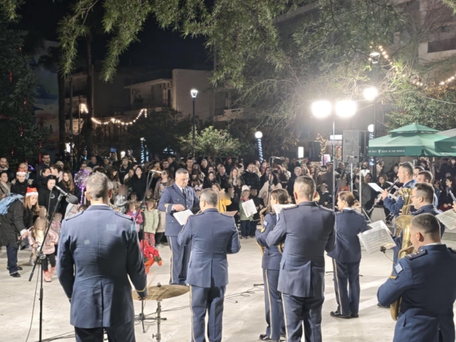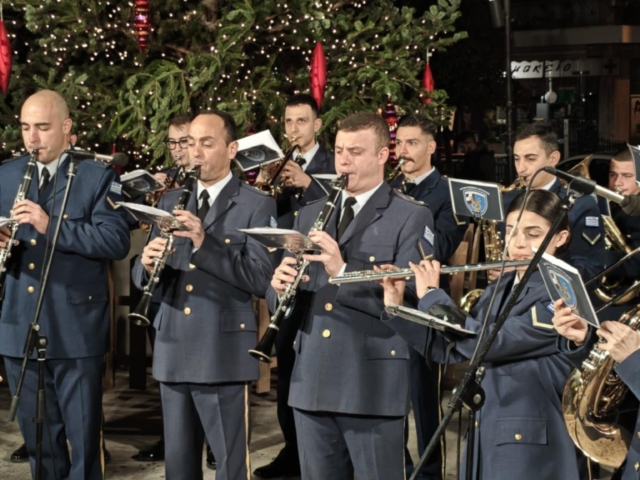 Η Μπάντα της Πολεμικής Αεροπορίας μας τίμησε με τις μοναδικές χριστουγεννιάτικες μελωδίες και τις δύο γιορτινές ημέρες, πλημμυρίζοντας υπέροχη μουσική τις πλατείες της πόλης μας και δημιουργώντας μια μαγική ατμόσφαιρα.