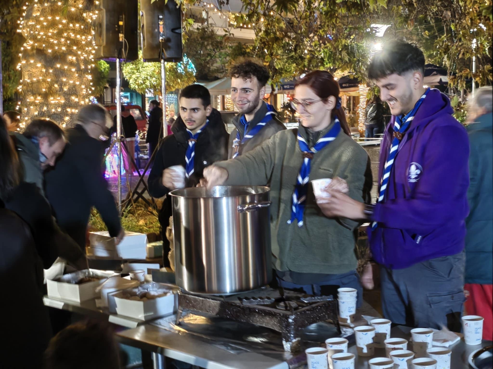 Μικροί και μεγάλοι έγιναν μια μεγάλη ζεστή αγκαλιά, απολαμβάνοντας ζεστό κρασί και παραδοσιακά εδέσματα, σε ένα γιορτινό κλίμα με πολλά χαμόγελα.