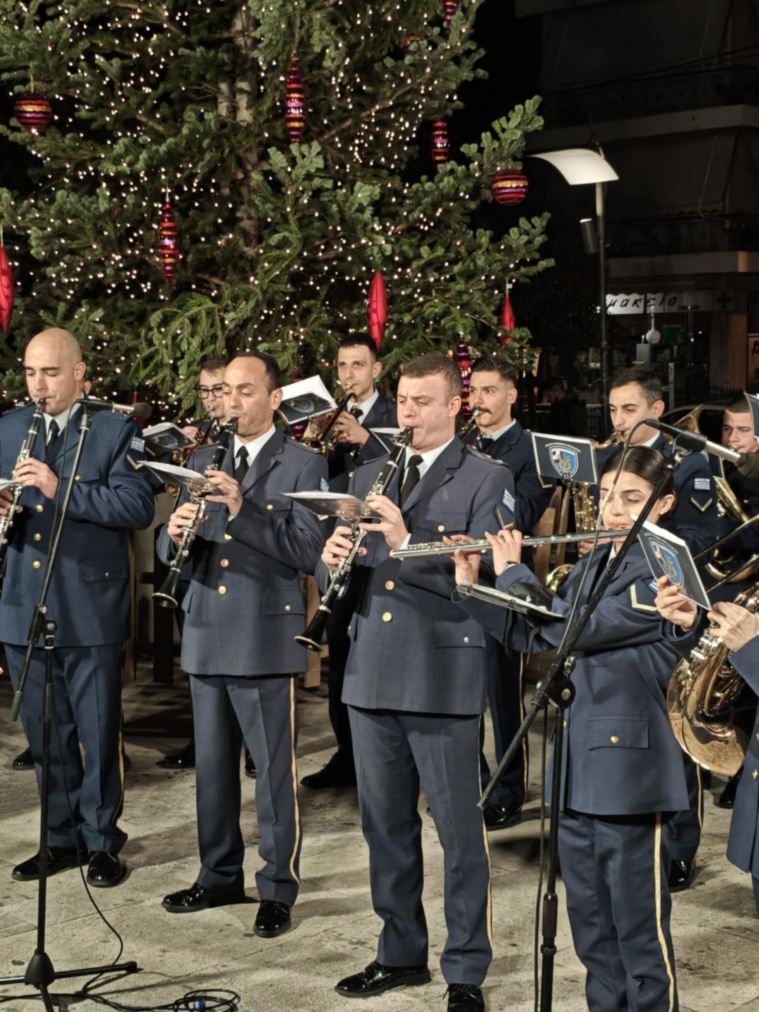 Η Μπάντα της Πολεμικής Αεροπορίας μας τίμησε με τις μοναδικές χριστουγεννιάτικες μελωδίες και τις δύο γιορτινές ημέρες, πλημμυρίζοντας υπέροχη μουσική τις πλατείες της πόλης μας και δημιουργώντας μια μαγική ατμόσφαιρα.