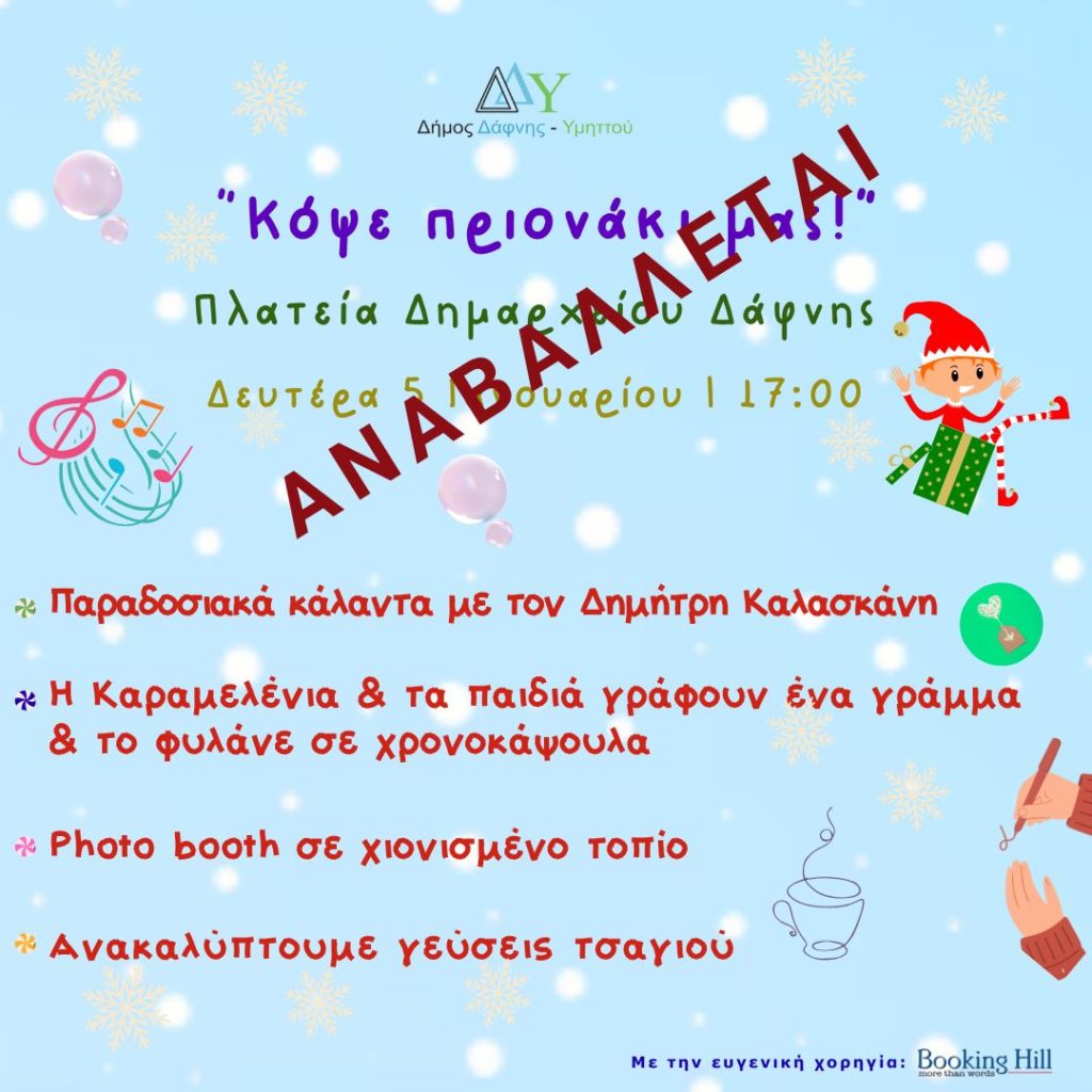 Οι δράσεις θα πραγματοποιηθούν αύριο, 6 Ιανουαρίου 2026, στις 17:00, στην Πλατεία Δημαρχείου Δάφνης.