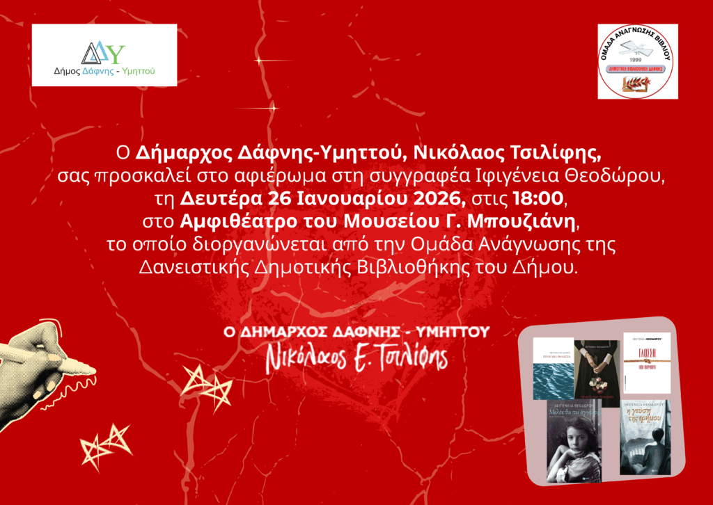 Εκδήλωση Ομάδας Ανάγνωσης Δήμου Δάφνης-Υμηττού | Δευτέρα 26 .01.2026 | 18:00 | Αμφιθέατρο Μουσείου Γ. Μπουζιάνη