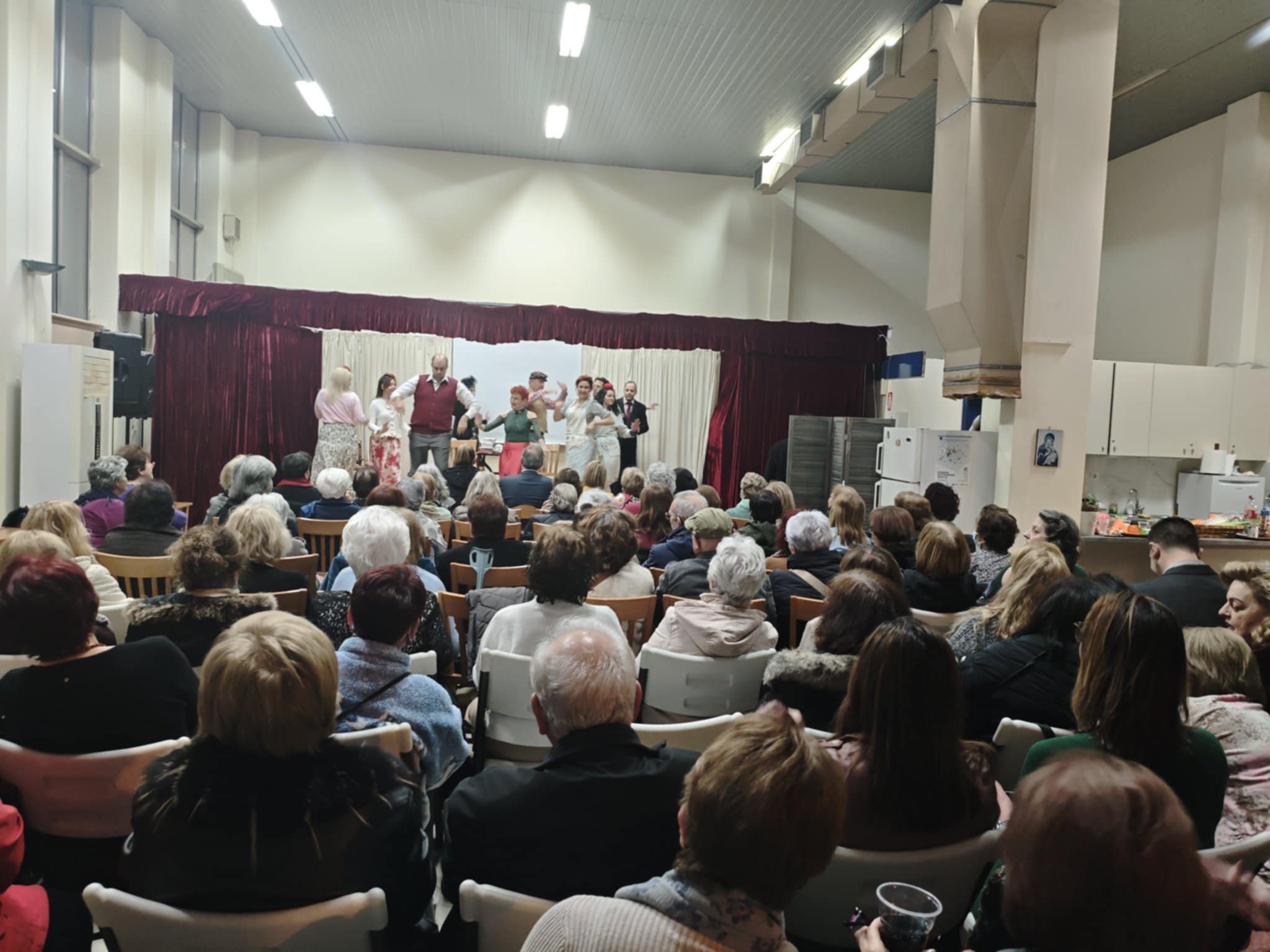 Η κατάμεστη Μιχαλοπούλειος Αίθουσα στο Α’ Κ.Α.Π.Η. Δάφνης υποδέχτηκε με μεγάλη χαρά τη θεατρική ομάδα «Χορίκιος», που χάρισε στο κοινό μια ευχάριστη και διασκεδαστική παράσταση.