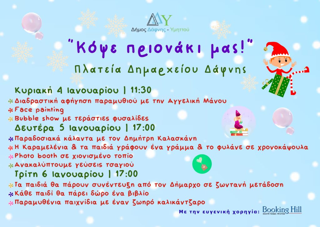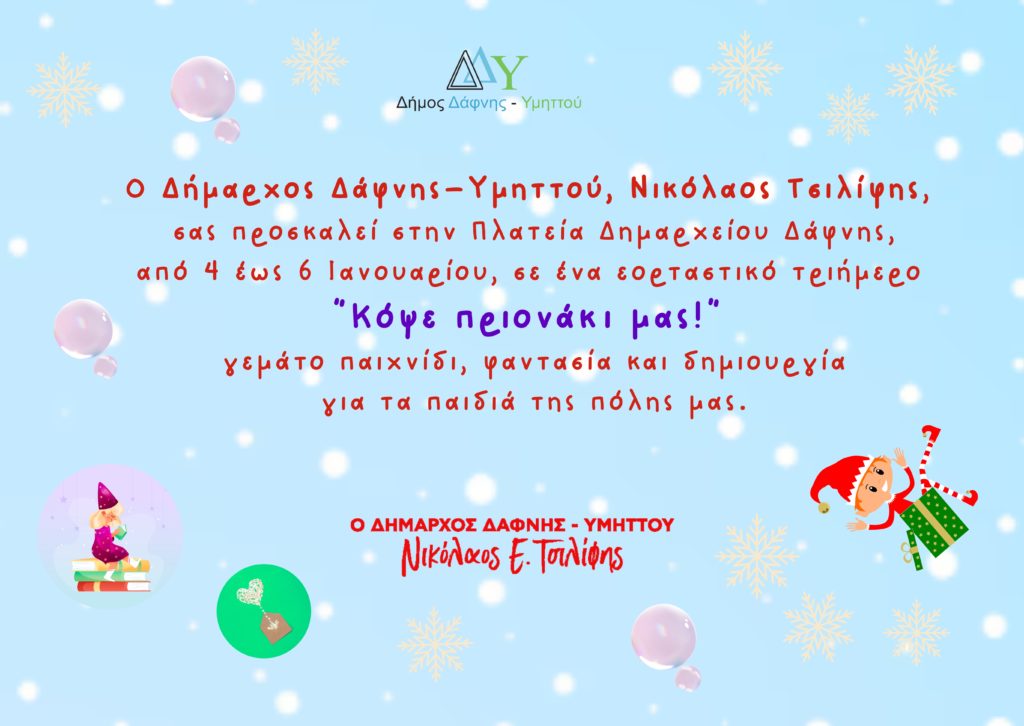 Ένα εορταστικό τριήμερο, από 4 έως 6 Ιανουαρίου, γεμάτο παιχνίδι, φαντασία και πρωτότυπες δράσεις για τα παιδιά της πόλης μας.
