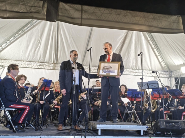 Ο Πρόεδρος της Φιλαρμονικής Κυνοπιαστών Κέρκυρας προσέφερε στον Δήμαρχο αναμνηστικό δώρο και τοπικά κερκυραϊκά προϊόντα, ως ένδειξη ευχαριστίας για τη θερμή φιλοξενία στην πόλη μας και τις ξεχωριστές μουσικές διαδρομές που μοιράστηκαν οι κάτοικοι της Δάφνης και του Υμηττού με τους μουσικούς της Φιλαρμονικής.