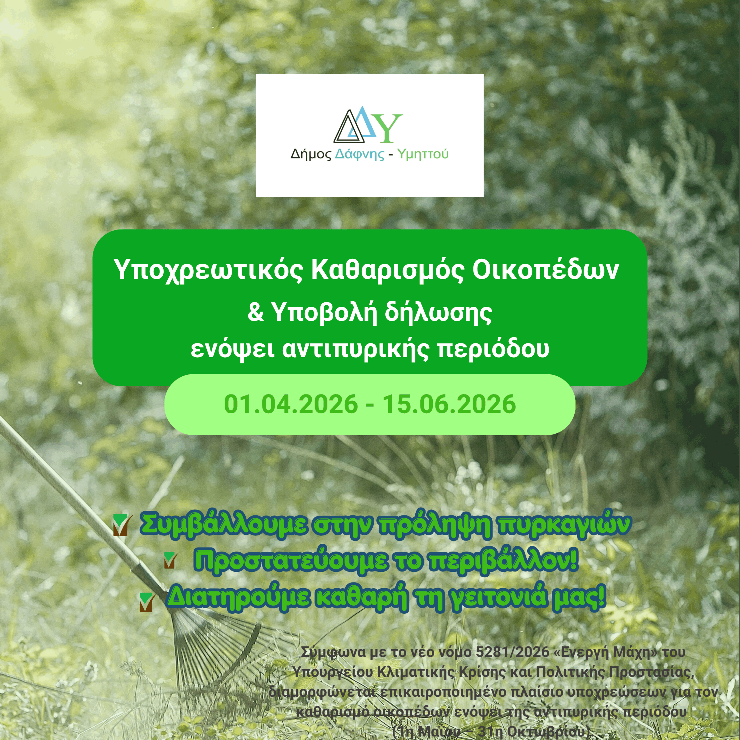 Δελτίο Τύπου – Ανακοίνωση του Δήμου Δάφνης – Υμηττού και της 1ής Υγειονομικής Περιφέρειας Αττικής