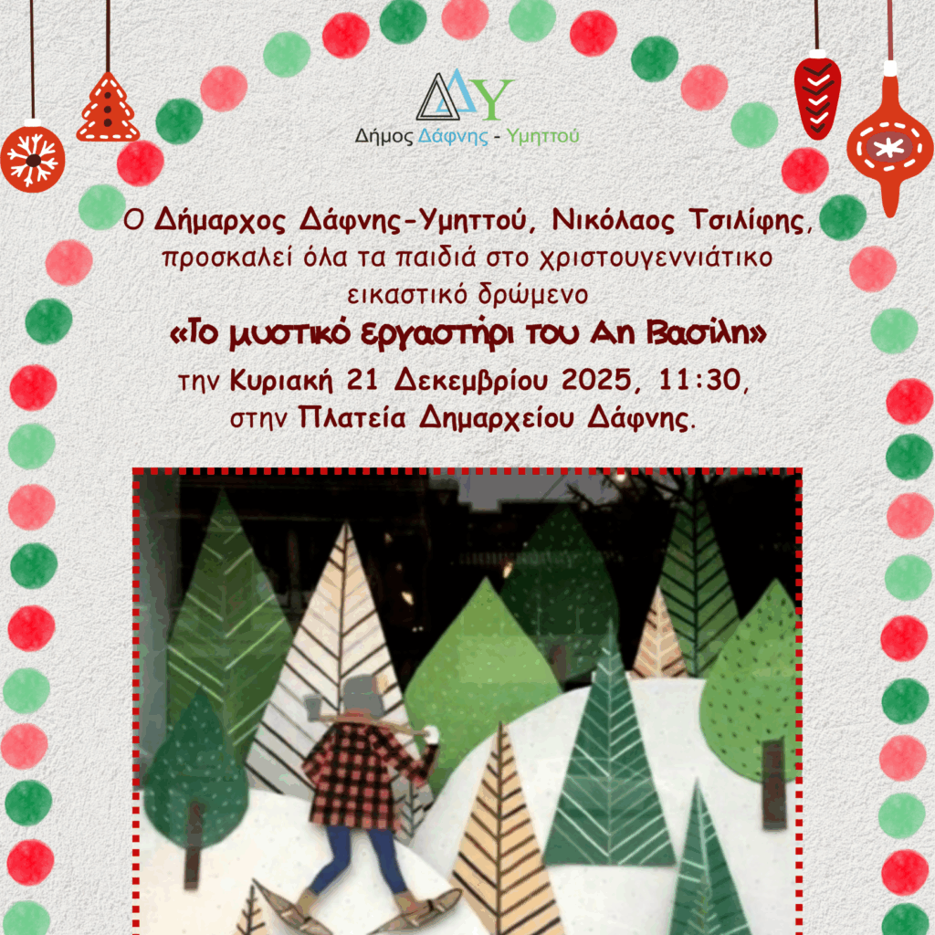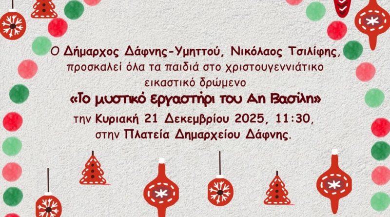 Το μυστικό εργαστήρι των Χριστουγέννων ανοίγει τις πόρτες του την Κυριακή 21 Δεκεμβρίου, στις 11:30, στην Πλατεία Δημαρχείου Δάφνης!