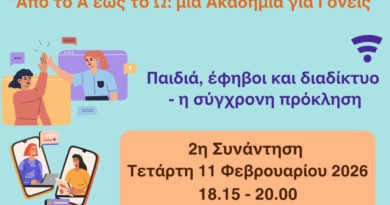Πρόγραμμα «Από το Α έως το Ω: Μία Ακαδημία για Γονείς» υπό την Αιγίδα του ΕΔΔΥΠΠΥ – 4η Συνάντηση 12.01.2022 και ΄ωρα 18:15 με 20:00