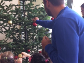 Τα παιδιά των παιδικών σταθμών Δήμου Δάφνης Υμηττού στόλισαν το Χριστουγεννιάτικο δέντρο στο πρώην Δημαρχείο Υμηττού, με στολίδια που τα ίδια κατασκεύασαν μαζί με τις παιδαγωγούς.Στο στολισμό συμμετείχαν ο Δήμαρχος Δάφνης Υμηττού κ. Μπινίσκος Αναστάσιος, ο πρόεδρος του Οργανισμού Κοινωνικής Πολιτικής Δάφνης Υμηττού κ. Σταυριανουδάκης Κωνσταντίνος Νεκτάριος, η αντιπρόεδρος του Οργανισμού Κοινωνικής Πολιτικής Δάφνης Υμηττού κ. Καρακώνη Βερίνα, η αντιδήμαρχος κ. Θάνου Χρύσα, ο πρόεδρος του Οργανισμού Πολιτισμού και Αθλητισμού Δάφνης Υμηττού κ. Τζιβελέκας Ιωάννης και ο πρόεδρος της κοινότητας Υμηττού κ. Μποζίκης Νικόλαος.