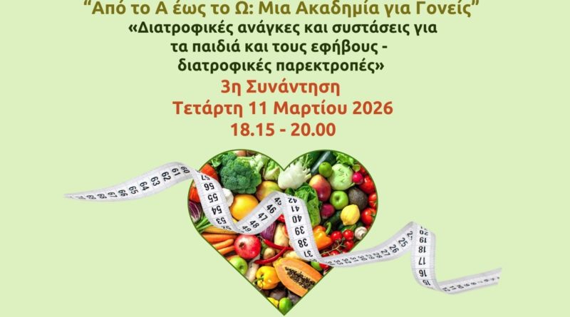 Δημοσίευση: 9 Μαρτίου 2026, 13:57Το Ελληνικό Διαδημοτικό Δίκτυο Υγιών Πόλεων (ΕΔΔΥΠΠΥ) του Π.Ο.Υ. και ο Πρόεδρος του Γ. Πατούλης, σας καλεί να παρακολουθήσετε το φετινό κύκλο των Ακαδημιών Γονέων “Από το Α έως το Ω”,