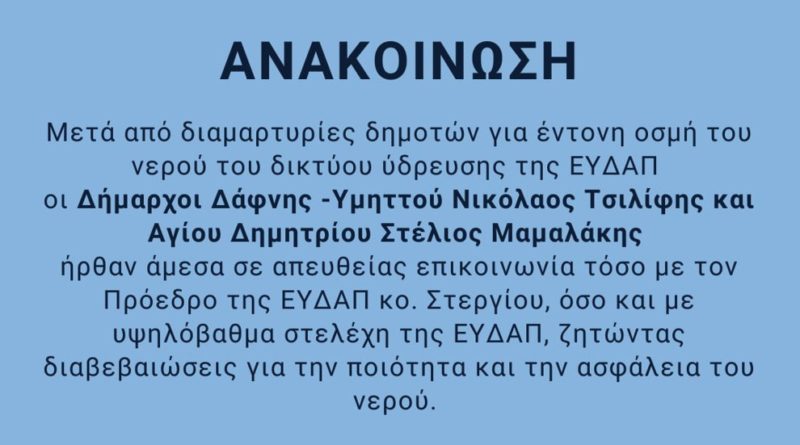 Ανακοίνωση του Δήμου Δάφνης – Υμηττού