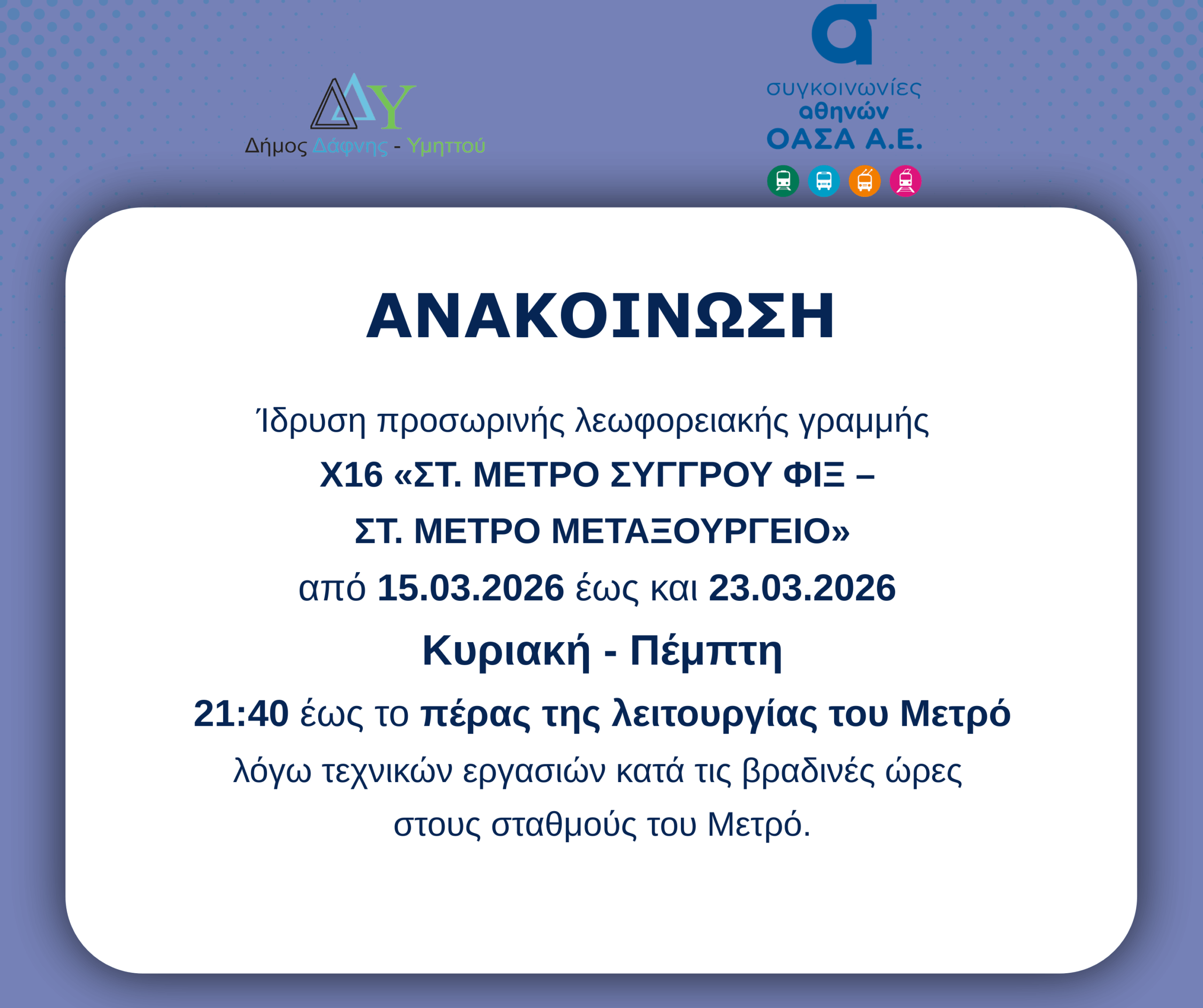 Καλείσθε να συμμετάσχετε στην 1η συνεδρίαση (τακτική) της Δημοτικής Επιτροπής Ισότητας Φύλων του Δήμου Δάφνης Υμηττού, η οποία συγκροτήθηκε σύμφωνα με τα άρθρα 75 παρ. Ι του ν. 3463/2006 (Κ.Δ.Κ.), του άρθρου 6 του ν. 4604/2019 (Α΄50) και του άρθρου 70Α του ν. 3852/2010 (Α΄50), που θα γίνει την Δευτέρα 22 Ιουλίου και ώρα 10:00 και θα πραγματοποιηθεί στην αίθουσα του Δημοτικού Συμβουλίου στο Δημοτικό Κατάστημα Υμηττού (πρώην Δημαρχείο Υμηττού), Πλ. Ηρώων Πολυτεχνείου 1 σύμφωνα με το άρθρο 4 του Κανονισμού Λειτουργίας της Δημοτικής Επιτροπής Ισότητας του Δήμου Δάφνης Υμηττού.