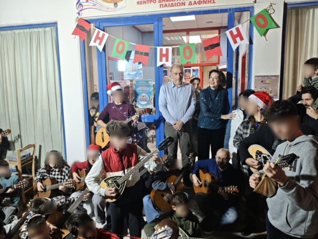 Τα παιδιά του Δήμου μας, κρατώντας τις κιθάρες και τα μπουζούκια τους, πλαισιωμένα από τους δασκάλους τους, παρουσίασαν και τραγούδησαν χριστουγεννιάτικα κάλαντα, γεμίζοντας τον χώρο με μελωδίες και νότες χαράς.